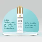 HYDRA PLUMP est un sérum hydra-repulpant quotidien enrichi en acide hyaluronique et en vitamine B5 pour un effet hydratant optimal. L’acide hyaluronique de bas poids moléculaire stimule l’activité de la peau pour lutter contre les rides et favorise une hydratation prolongée Alors que l’acide hyaluronique de haut poids moléculaire agit en surface, repulpe la peau et améliore son élasticité. La vitamine B5 maintient la peau bien hydratée en empêchant la perte d’eau transépidermique. Texture légère rapidement absorbée, non grasse, non collante.