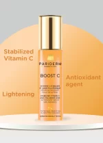 BOOST C is a daily antioxidant and tonifying serum combining 3% stabilized Vitamin C with Hyaluronic Acid. It protects the skin against oxidative stress* that promotes premature skin aging. BOOST C maintains the radiance and the luminosity of the skin providing a lasting hydration. The skin texture is refined, the tone is more even, the skin looks smoother and velvety. Light texture easily absorbed, non-greasy, non-sticky. Adapted for young skin.